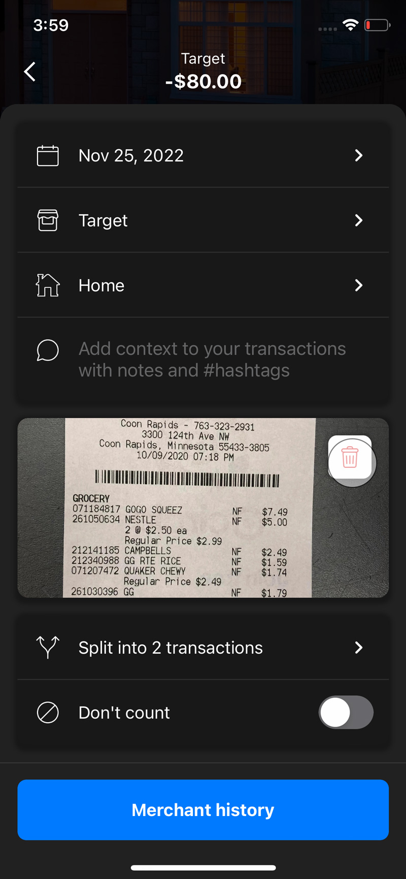 - Hit on the line you’d like to edit, such as merchant or category.