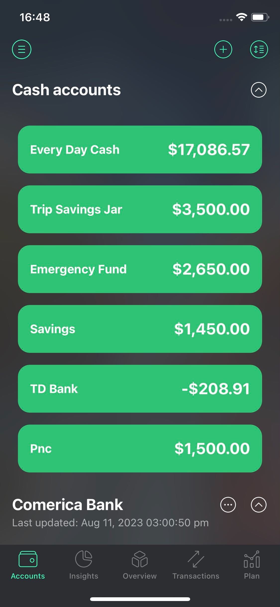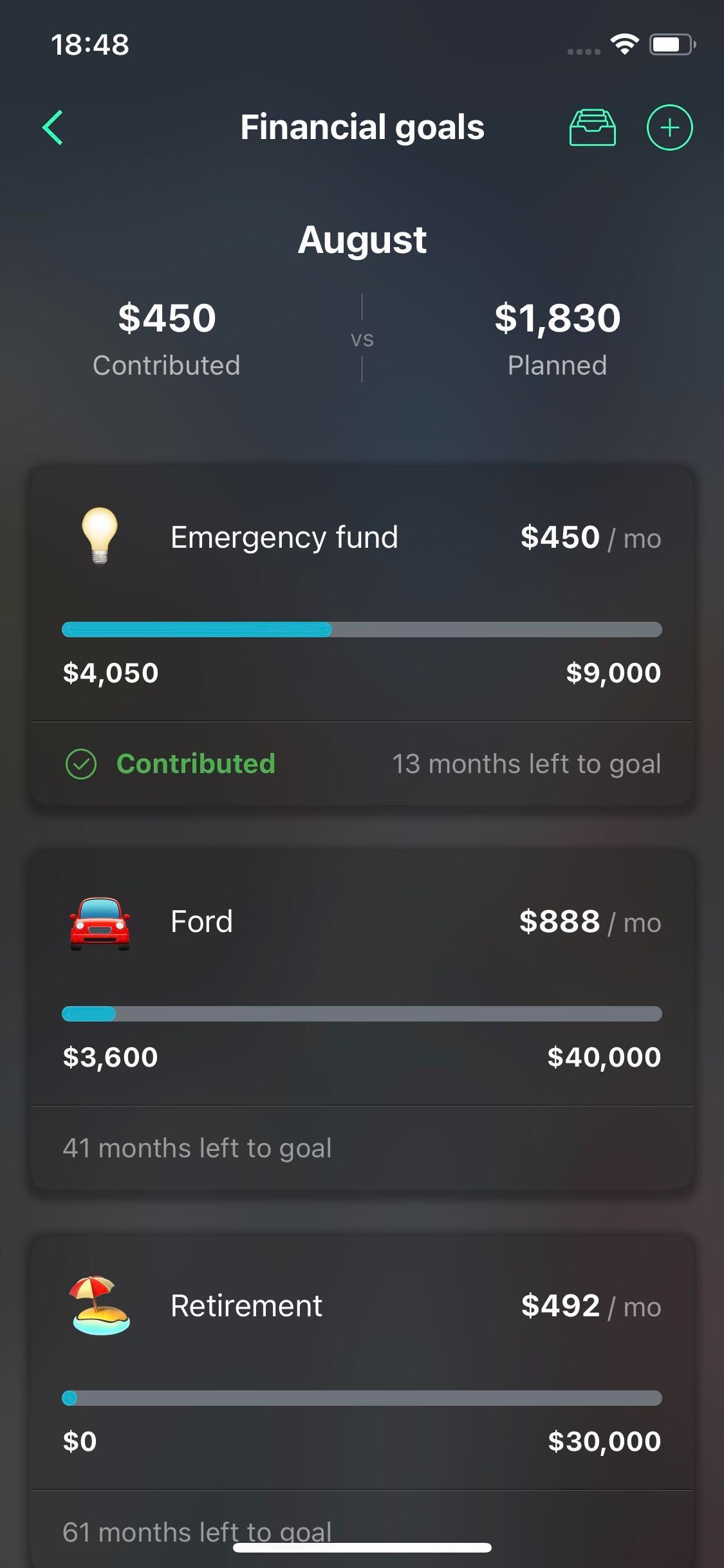 Create as many Goals as the accounts you linked to the app, including Cash.