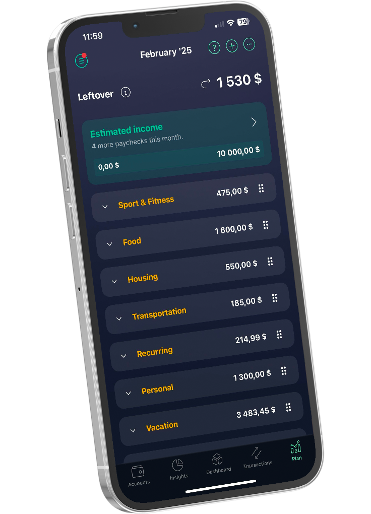 Once we define your bills and subscriptions, we predict them in your leftover for the current month.